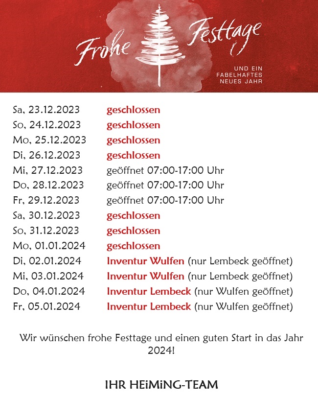 Öffnungszeiten Jahreswechsel HEiMiNG